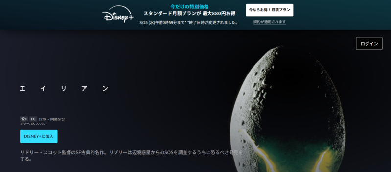 Disney+(ディズニープラス)は、「エイリアン」シリーズをまとめて見たい方におすすめのサブスクです。