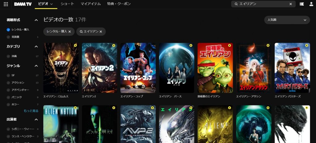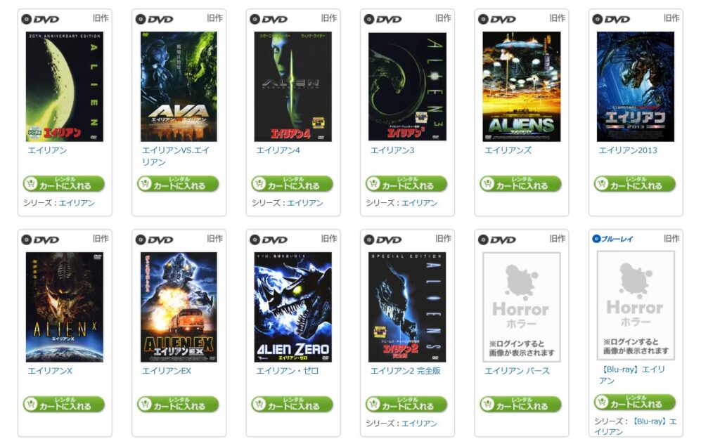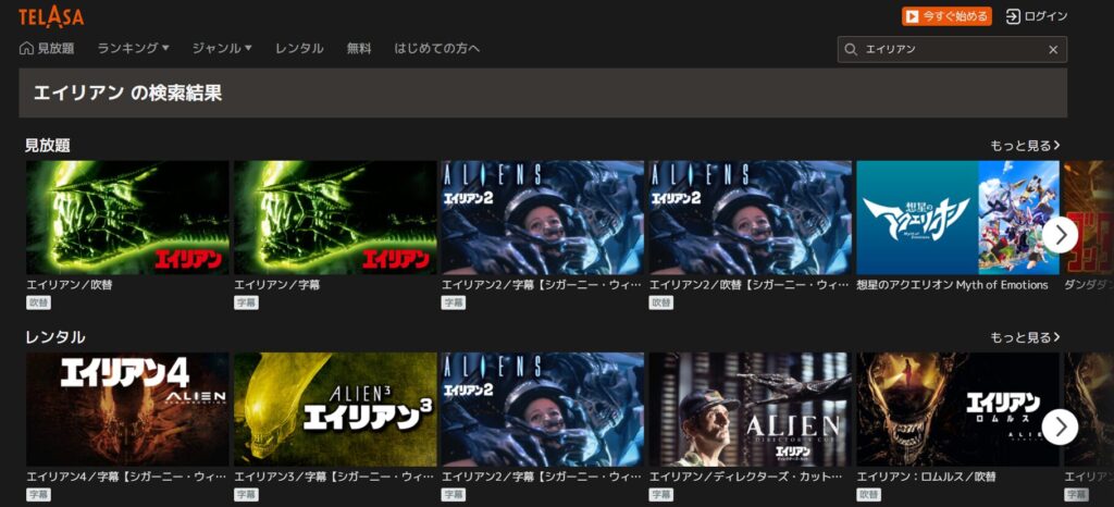 ただし、エイリアンシリーズは一部レンタルになるので覚えておきましょう。