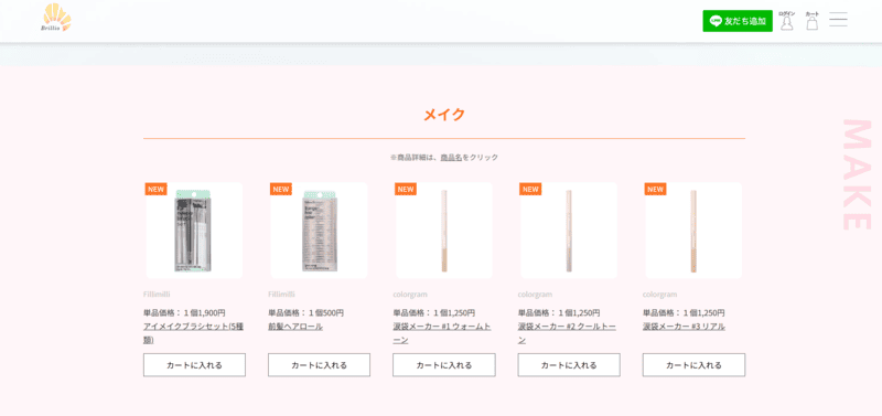 取り扱いアイテムスキンケア、メイク、アクセサリー、雑貨など