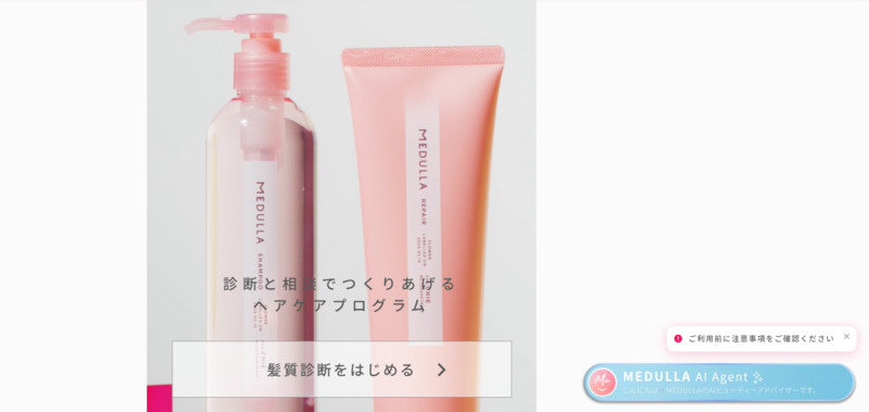 MEDULLA(メデュラ)は、丁寧な髪質診断をもとに「あなた専用のヘアケア」が届くパーソナライズ型サブスクです。