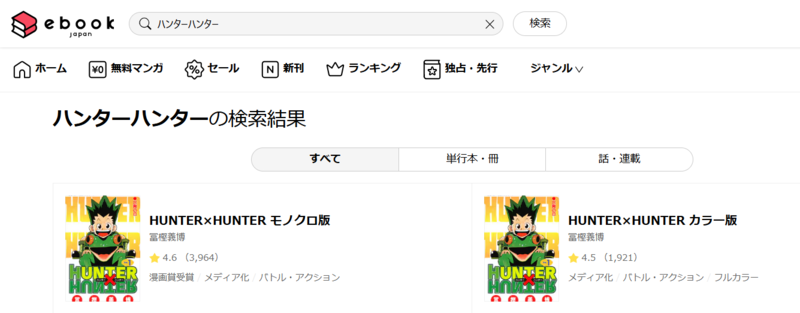 ただ、正直にお伝えすると、ハンターハンターは月額定額で読み放題になるサブスクは現時点ではありません