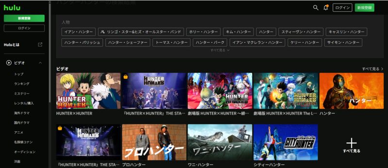 Huluは月額1,026円(税込)で、ハンターハンター新アニメ全話と劇場版2作品が見放題です。
