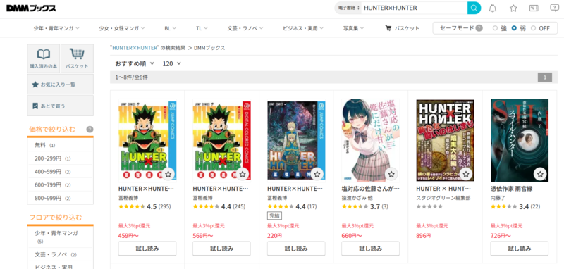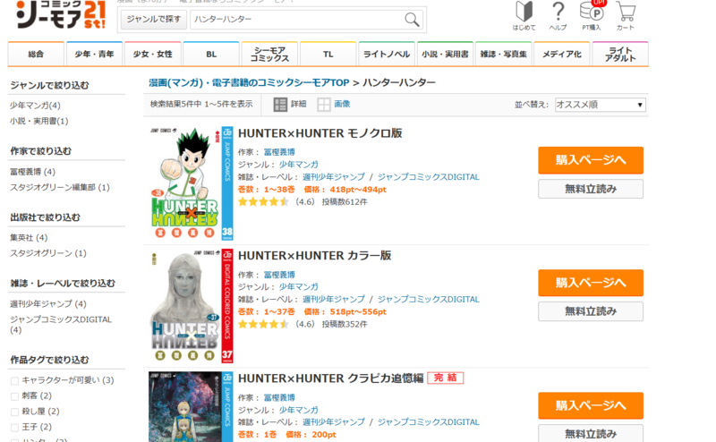 ハンターハンターを「アニメじゃなくて漫画で読みたい!」という方も多いですよね。