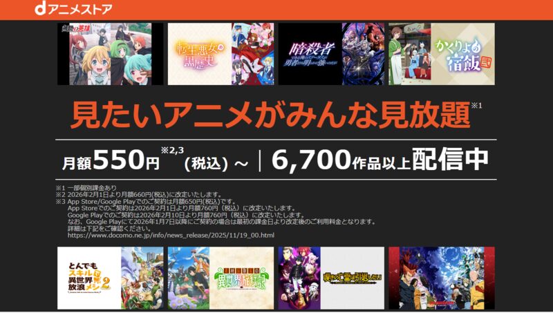 月額550円という圧倒的な安さで、5,700本以上のアニメ作品が見放題。
