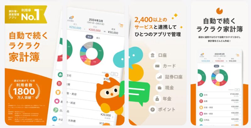 銀行口座・クレジットカード・電子マネーなど2,600以上の金融サービスと連携できる、日本でもっとも使われている家計簿アプリのひとつです。